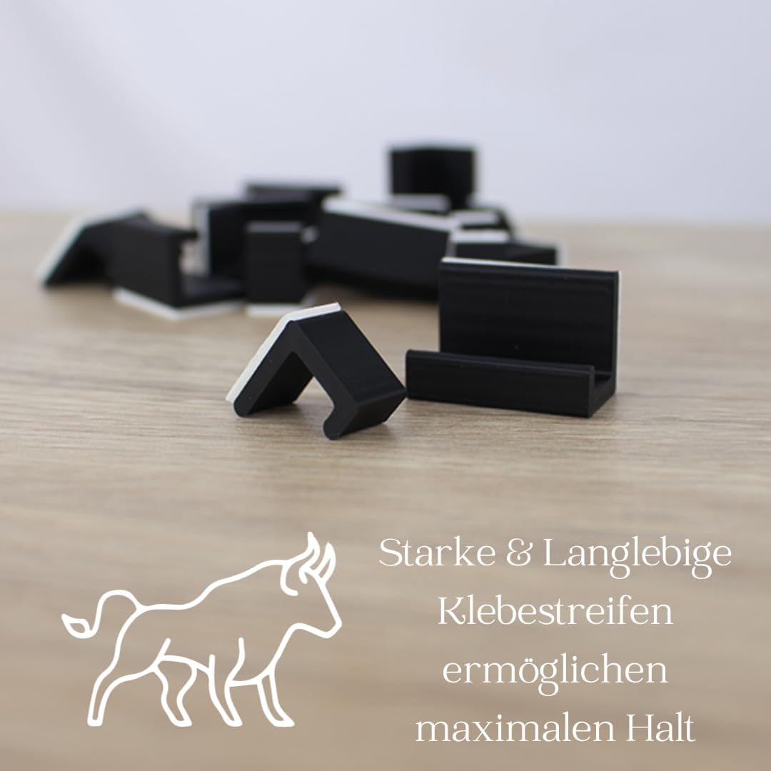 🛠️ Montage ohne Bohren: Die Clips sind mit Klebestreifen vorbereitet, die Anbringung erfolgt schnell und ohne Werkzeug.