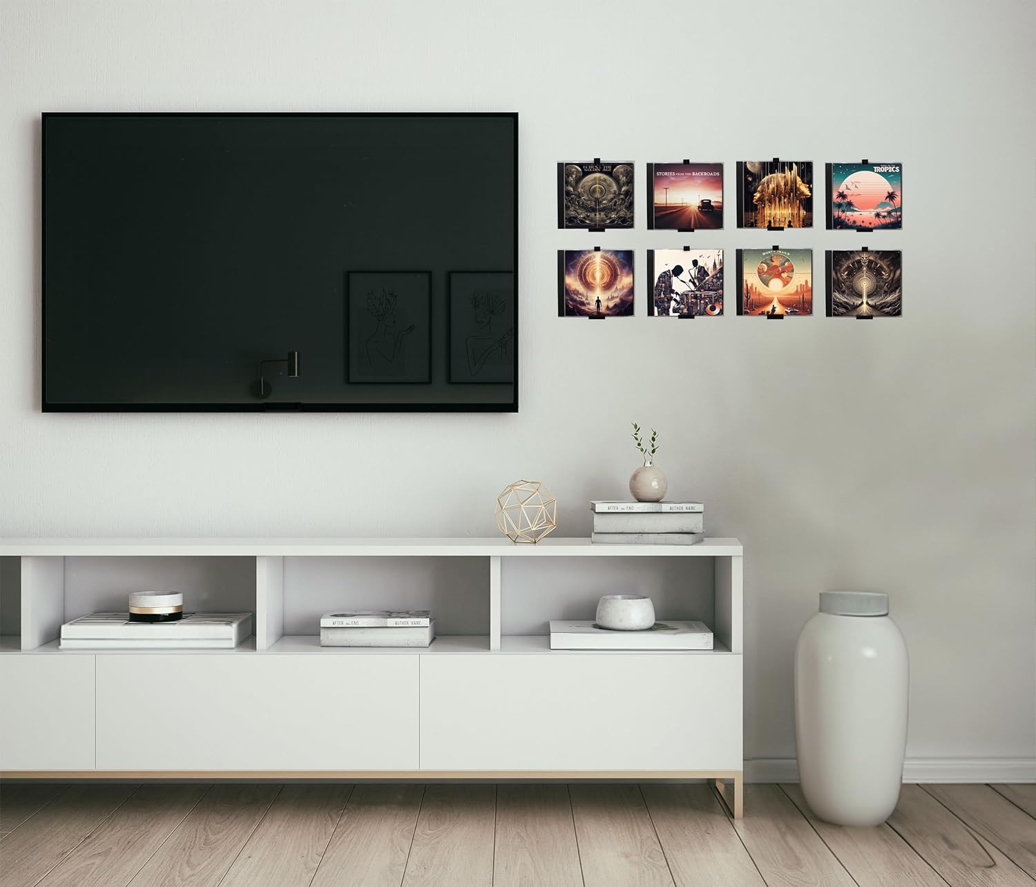 🔄 Flexible CD-Entnahme: Die CDs lassen sich jederzeit leicht herausnehmen und austauschen, perfekt für wechselnde Wandgalerien und Sammler-Displays.
