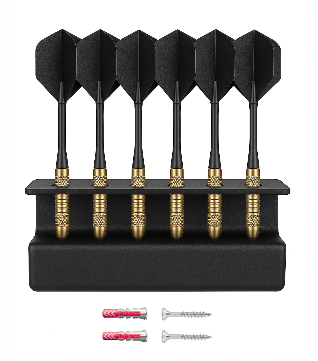 Entdecken Sie die perfekte Lösung, um Ihre Dartpfeile elegant und sicher zu präsentieren – unseren hochwertigen Dartwandhalter! Dieses in Deutschland hergestellte Accessoire bietet nicht nur eine optimale Organisation Ihrer Dartpfeile, sondern auch ein modernes Design, das in jedes Interieur passt. Ob im Wohnzimmer, im Spielzimmer oder in Ihrem persönlichen Dartbereich, unser Wandhalter fügt sich nahtlos ein und bringt Ihre Dartleidenschaft stilvoll zum Ausdruck. Die einfache Installation ermöglicht es Ihnen, den Halter mühelos an jeder Wand zu befestigen. Mit dem beiliegenden Montagezubehör können Sie den Halter ohne Fachkenntnisse schnell und sicher anbringen. Unser Wandhalter wurde speziell entwickelt, um verschiedene Typen von Dartpfeilen, einschließlich Steel- und Soft-Darts, sicher aufzunehmen. Dies schützt Ihre Pfeile vor Beschädigungen und verlängert deren Lebensdauer erheblich. Rüsten Sie Ihren Spielbereich mit unserem Dartwandhalter auf und genießen Sie das Spiel mit Stil und Ordnung! Lieferumfang: 2x Dartwandhalter, 2x Schrauben, 2x Dübel