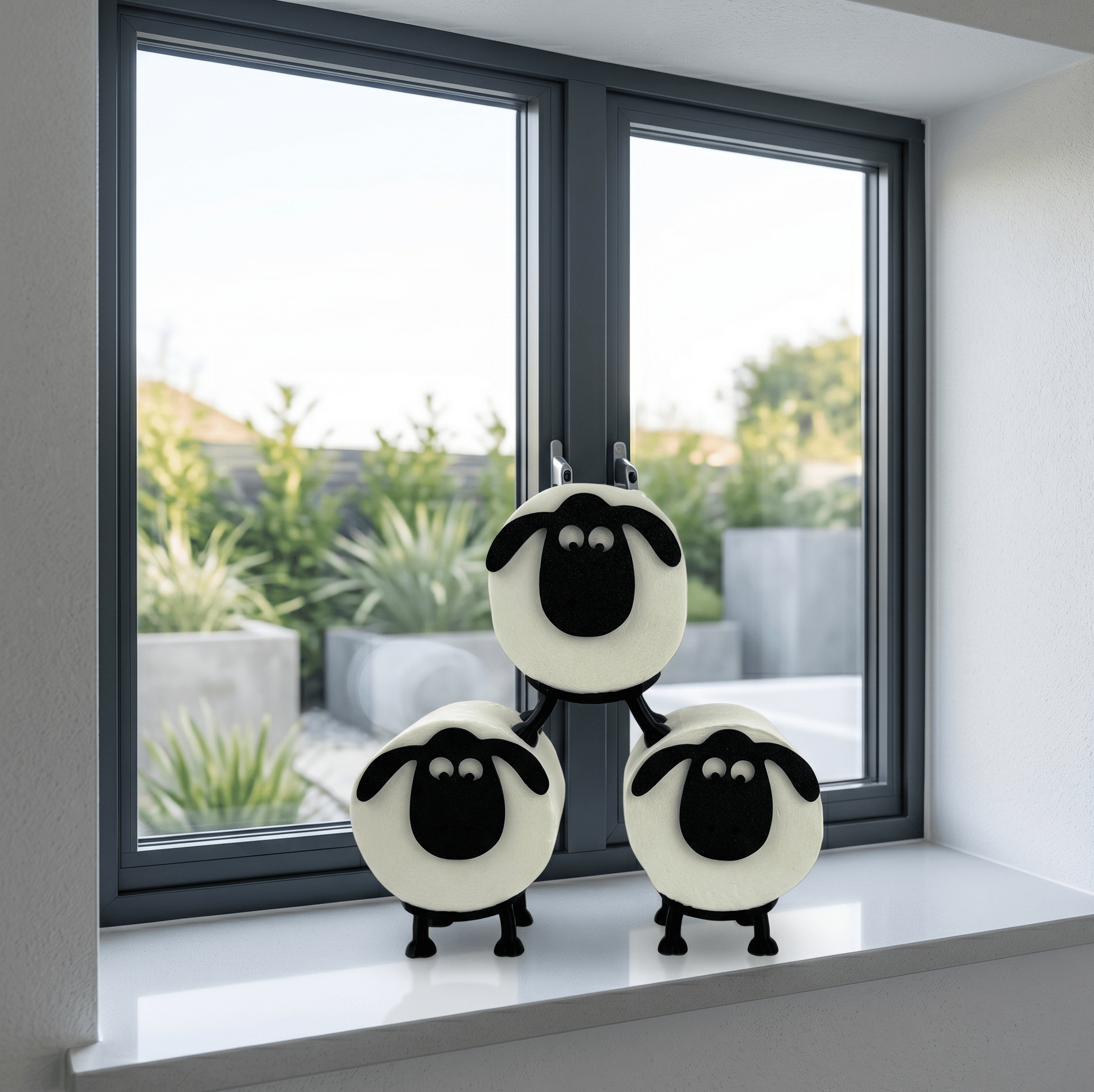 🔺 Stapelbare Mini-Pyramide: Zwei Doris mit geraden Beinen bilden die Basis, ein Schaf mit gespreizten Beinen krönt die Pyramide, für einen garantierten Wow-Effekt im Gäste-WC.