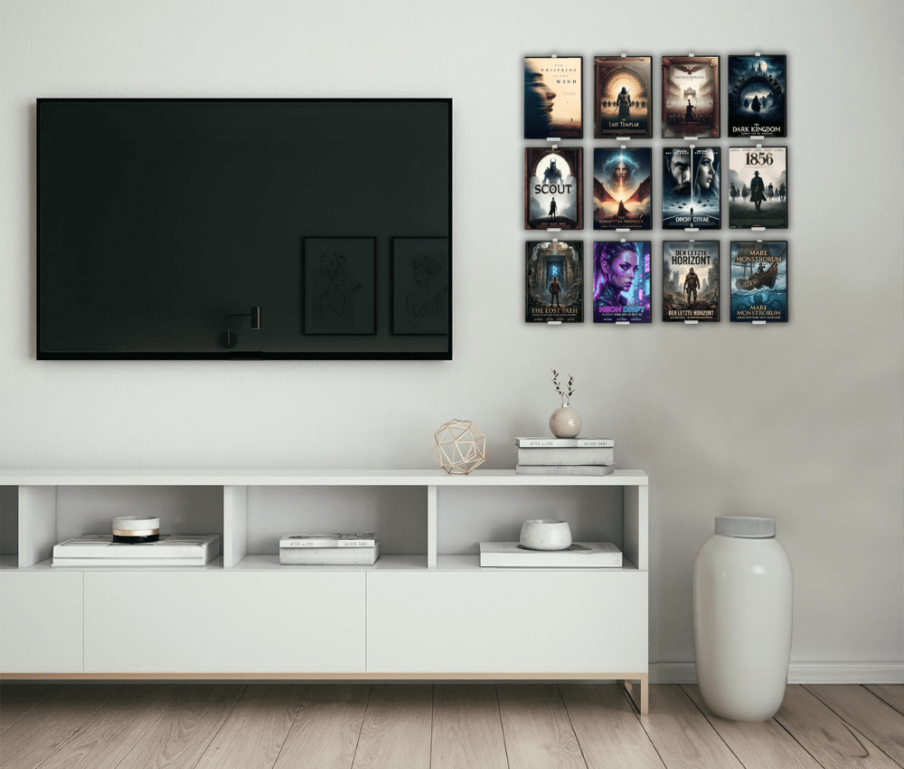 Die Naturalspring DVD Wandhalterung im 12er Set in Weiß verbindet minimalistisches Design mit praktischer Funktionalität und verwandelt Ihre DVD-, Blu-ray- und Spielesammlung in eine großzügige Wandgalerie. Mit den 24 selbstklebenden Befestigungsclips lassen sich insgesamt 12 Hüllen dekorativ an der Wand anbringen, jeweils ein Clip oben und ein Clip unten pro Hülle. Die Halter sind kompatibel mit handelsüblichen DVD-Hüllen, Blu-ray-Cases und den Verpackungen von PlayStation-, Xbox- und Nintendo-Wii-Spielen, sodass Ihre komplette Film- und Gamingsammlung einheitlich inszeniert werden kann. Die Montage erfolgt ohne Bohren mithilfe der bereits angebrachten Klebestreifen. Mit 12 Positionen haben Sie genug Platz für eine komplette Film-Reihe, Lieblings-Serien-Box oder eine stilvolle Gaming-Kollektion und können Ihre Cover als persönliche Wandgalerie im Stil einer Mini-Kinoplakat-Ausstellung inszenieren. Das dezente weiße Design verschmilzt optisch mit hellen Wänden und lässt die Cover-Artworks förmlich schweben, ideal für skandinavische, moderne und minimalistische Einrichtungsstile. Die einzelnen Hüllen lassen sich dabei jederzeit problemlos entnehmen und austauschen, sodass Sie Ihre Wandgalerie flexibel umgestalten können. Ob im Wohnzimmer, Arbeitszimmer, Heimkino, Gaming-Room oder Flur, die DVD Wandhalterung ist ein stilvolles Accessoire für Filmliebhaber, Gamer, Sammler und alle, die ihre Cover nicht im Schrank verstecken, sondern sichtbar präsentieren möchten. Zudem eignet sich das Set hervorragend als originelle Geschenkidee für Film- und Gaming-Begeisterte zum Einzug, Geburtstag oder Weihnachten. Im Lieferumfang enthalten sind 24x selbstklebende DVD Wandhalterungen in Weiß zur Befestigung von 12 Hüllen. DVDs, Blu-rays, Spiele und weitere abgebildete Gegenstände sind nicht im Lieferumfang enthalten.