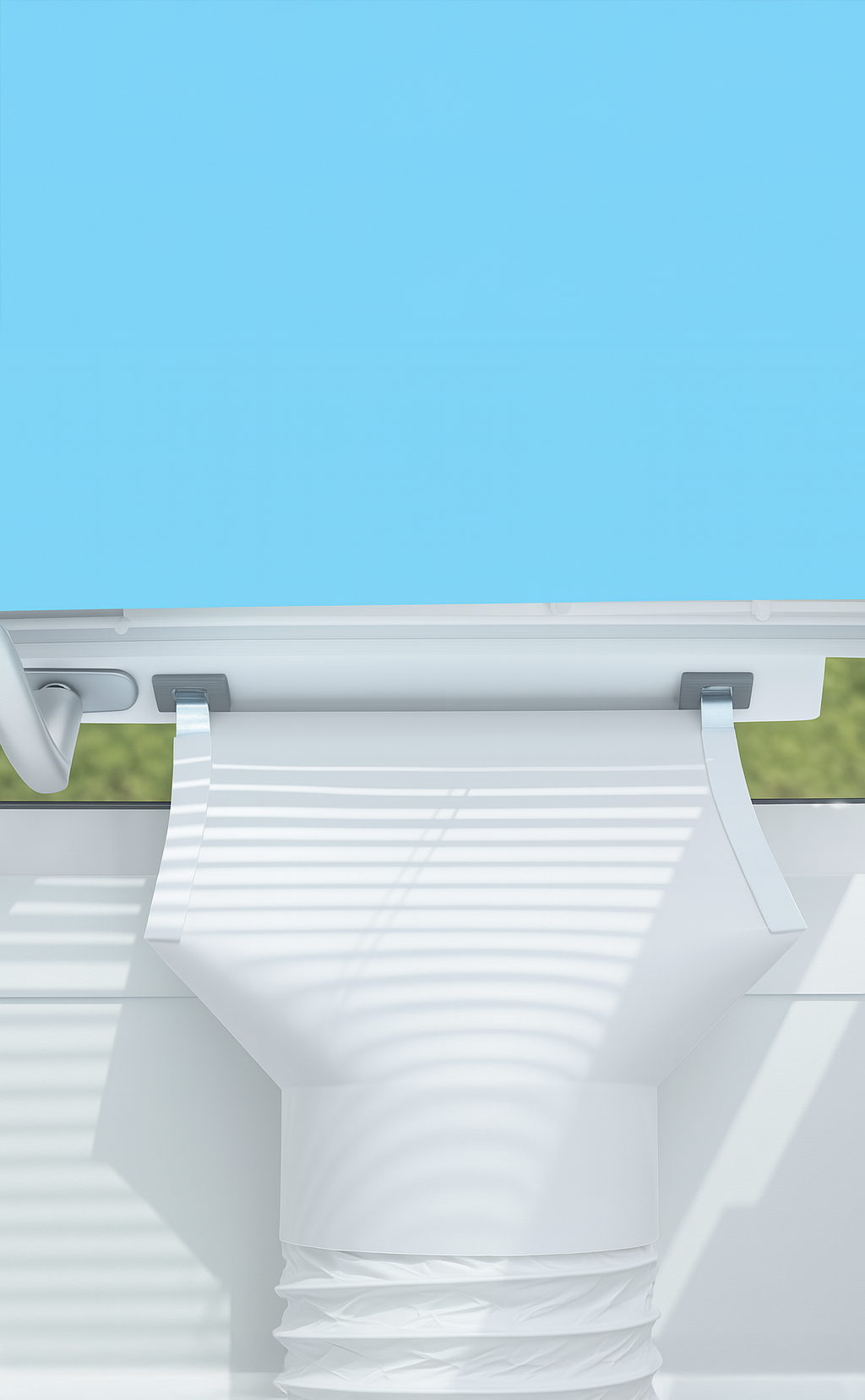 🍃 Effiziente Abluftführung: Adapter für mobile Klimageräte zur sicheren Ableitung heißer Luft über Dachfenster, Kippfenster oder Schwingfenster.