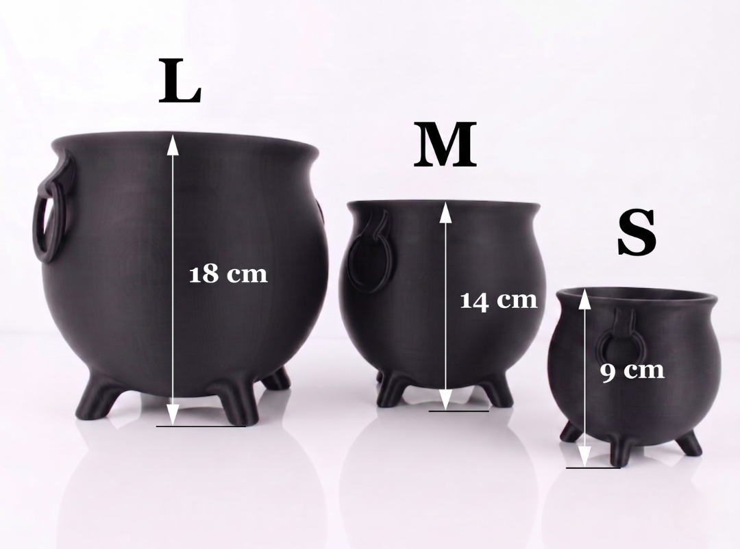 Der kleine Druidenkessel in Schwarz ist eine praktische und dekorative Lösung zur Aufbewahrung von kleinen Pflanzen, Süßigkeiten, Schmuck oder Büro-Kleinteilen. Durch sein außergewöhnliches Hexenkessel-Design mit vier stabilen Füßen und authentischen Ringhenkeln wird er schnell zum Blickfang auf jedem Schreibtisch, Regal oder Beistelltisch und verleiht Ihrem Zuhause eine ganz besondere Note. Ob als Halloween Candy Bowl für einzelne Naschereien, als Mini-Pflanztopf für kleine Sukkulenten, als Stift- und Kleinteile-Aufbewahrung oder als originelle Geschenkidee für Fantasy- und Halloween-Begeisterte, der Mini-Druidenkessel fügt sich harmonisch in verschiedene Umgebungen ein. Im Lieferumfang enthalten ist 1x Druidenkessel in Schwarz, Größe S mit einer Höhe von 9 cm. Pflanzen, Süßigkeiten und weitere abgebildete Gegenstände sind nicht im Lieferumfang enthalten.