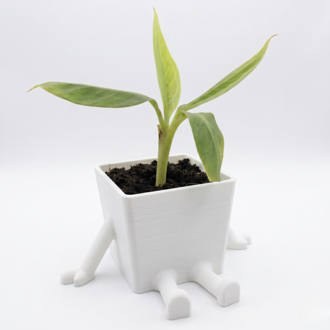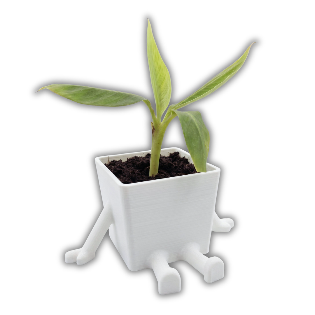 Pflanzentopf mit Beinen und Armen Weiß
