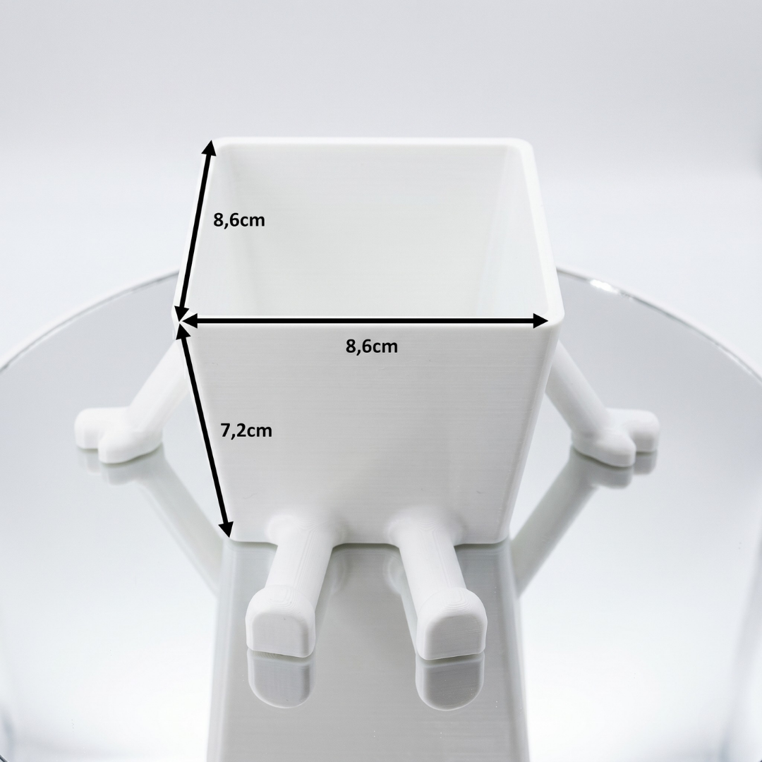 Der Pflanzentopf mit Beinen und Armen in Weiß ist eine originelle und dekorative Möglichkeit, kleine Pflanzen stilvoll zu präsentieren. Durch sein besonderes Design wird er schnell zum Blickfang auf Fensterbank, Regal oder Schreibtisch und fügt sich charmant in verschiedene Wohnbereiche ein. Er eignet sich ideal für Sukkulenten, Kakteen und kleine Blumen. Gesamthöhe 7,2 cm, Gesamtbreite 8,6 cm und Gesamttiefe 8,6 cm. Der Pflanzentopf ist für den Innenbereich geeignet. Im Lieferumfang enthalten ist 1x Pflanzentopf mit Beinen und Armen in Weiß. Pflanzen und weitere abgebildete Gegenstände sind nicht im Lieferumfang enthalten.