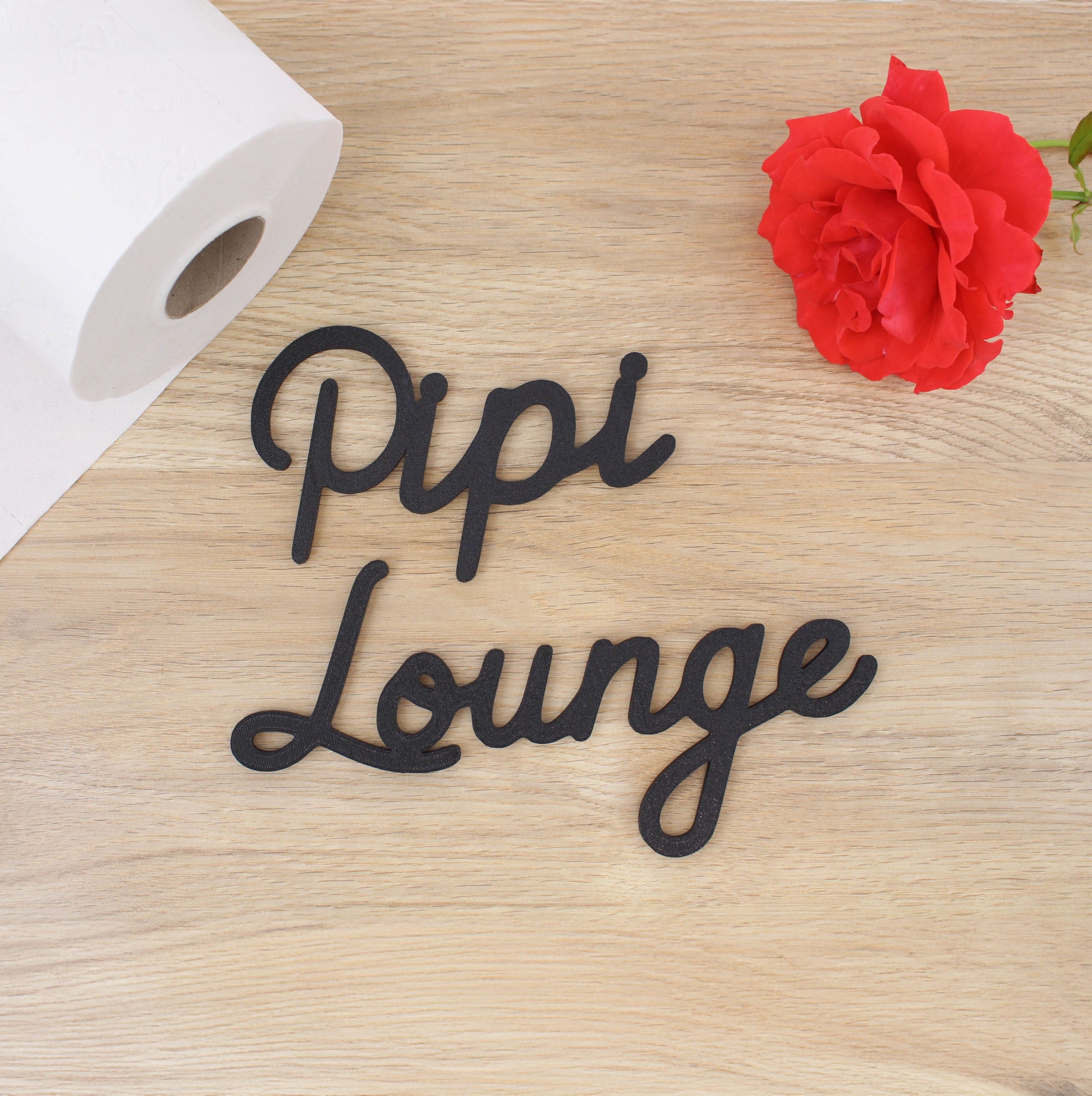 🚻 Humorvoller Wortwitz: Der charmante Schriftzug „Pipi Lounge“ spielt augenzwinkernd mit dem Kontrast zwischen WC-Funktion und edler Lounge-Anmutung, ein garantierter Schmunzler für Familie, Freunde und Gäste.