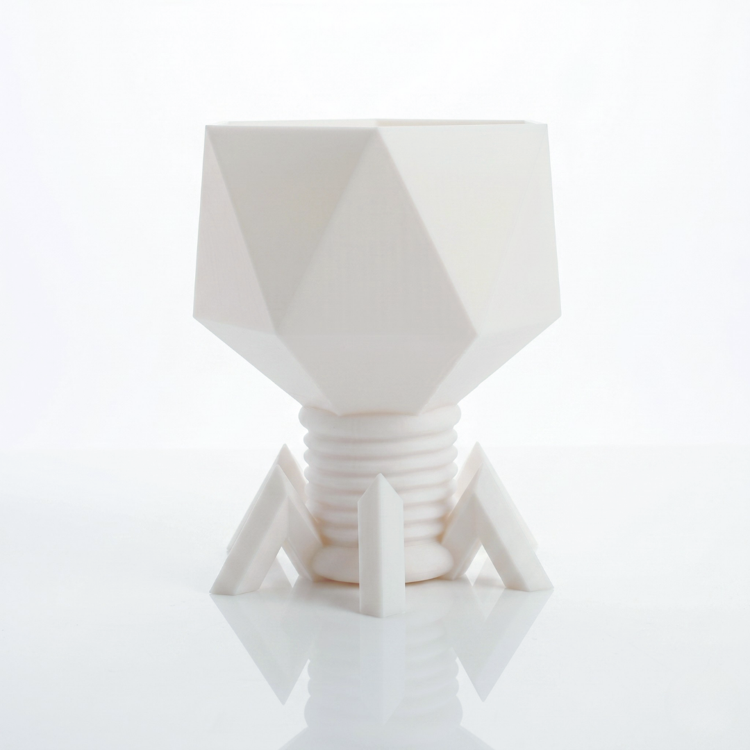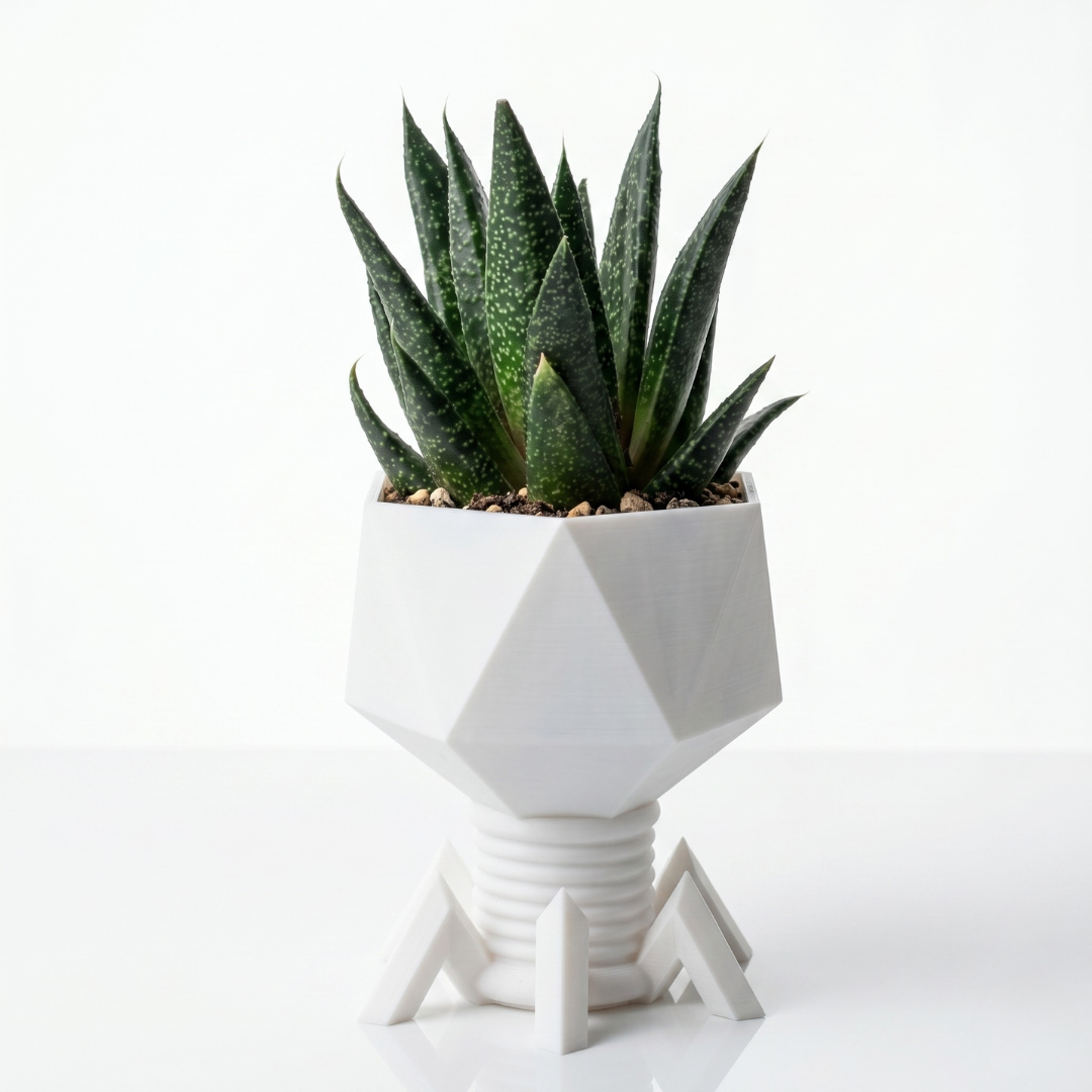 Die markante Form im Stil des Escherichia Virus T4 macht diesen Pflanzentopf zu einem besonderen Hingucker.