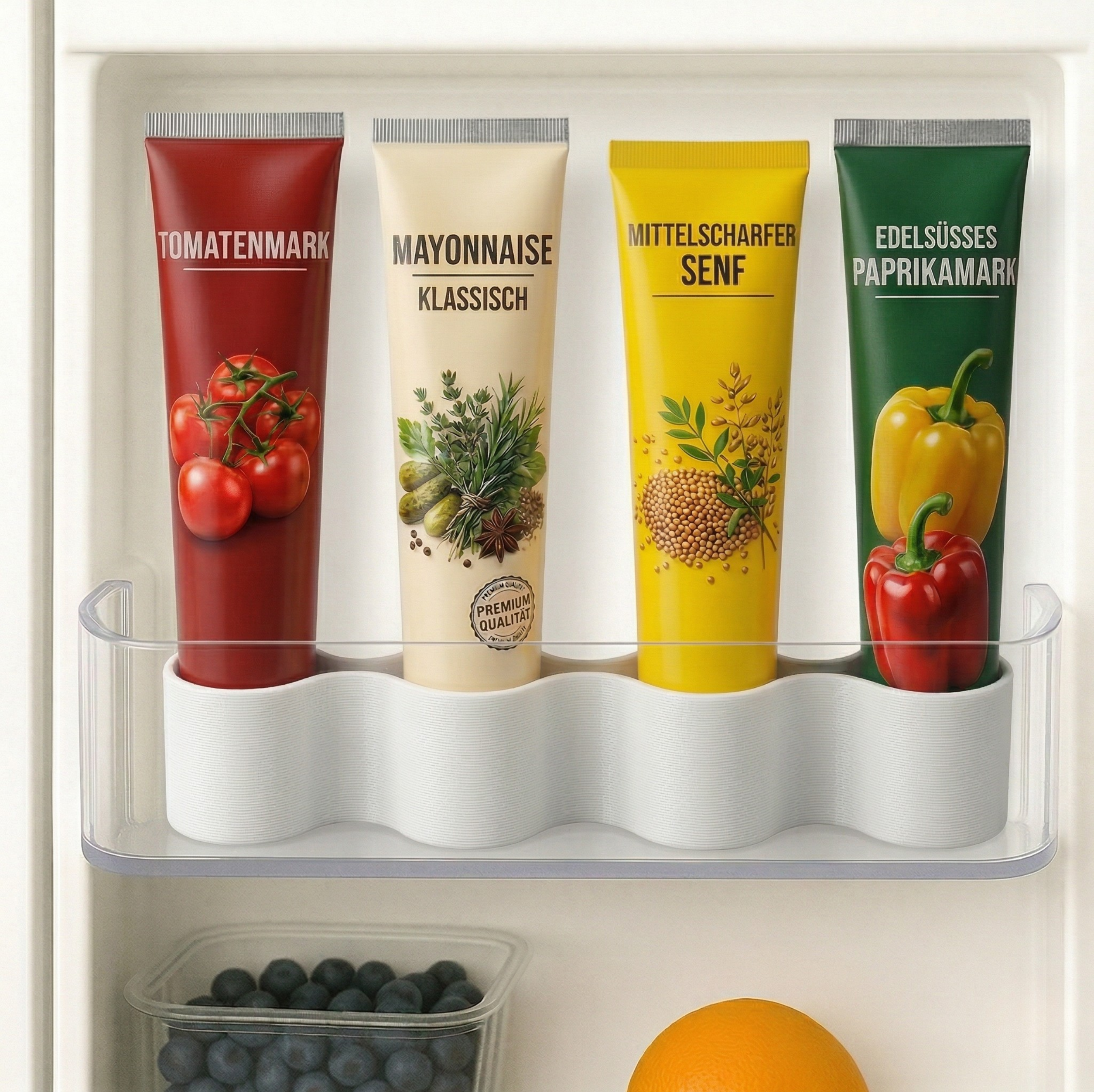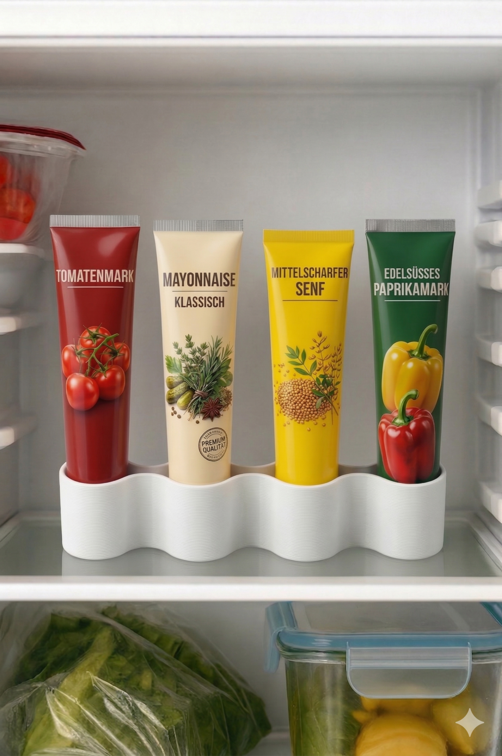 ✅ Ordnung im Kühlschrank – Schluss mit herumrollenden Tuben! Mit dem Tubenhalter sind Tomatenmark, Senf & Co. sauber verstaut.