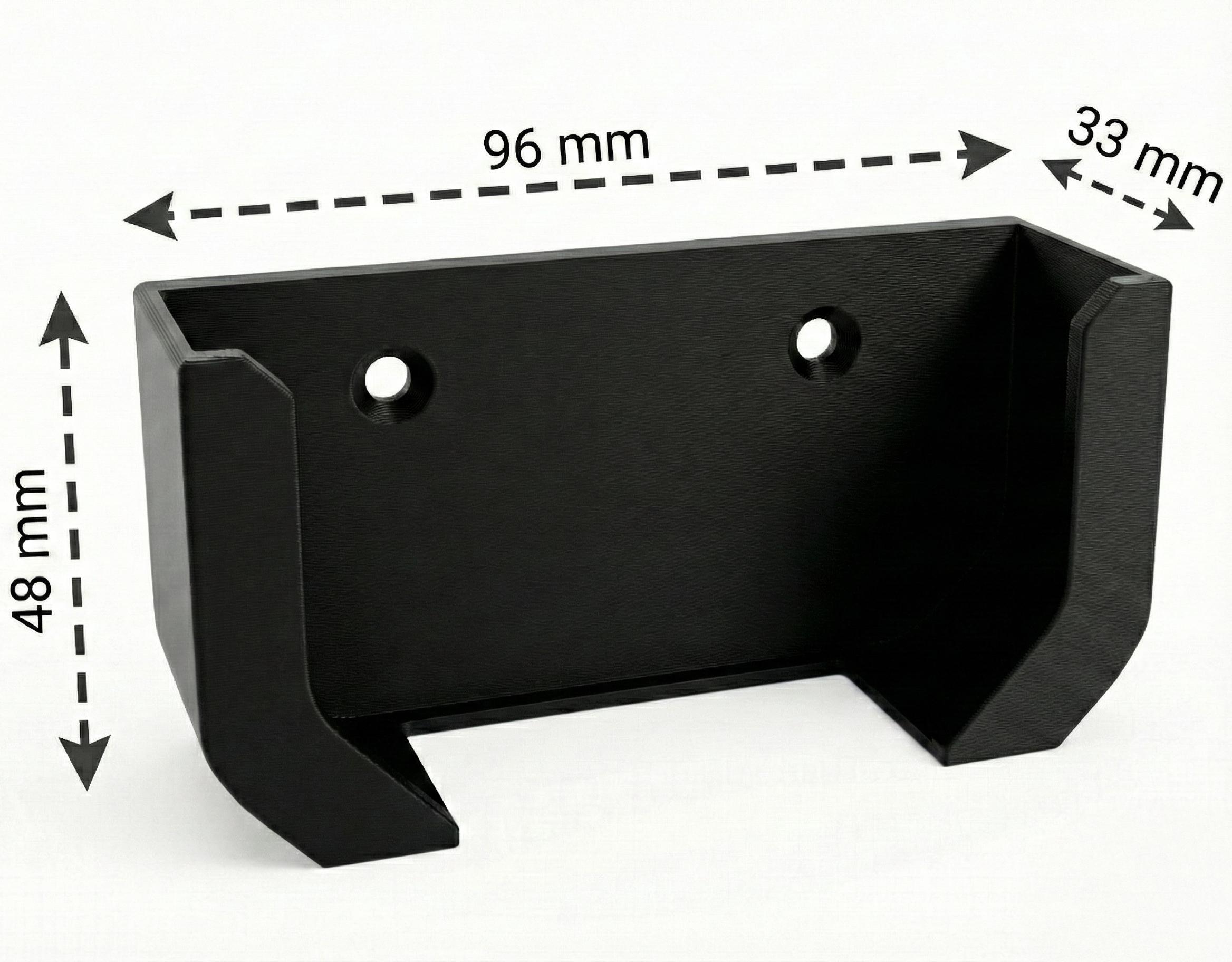 📐 KOMPAKTE ABMESSUNGEN & DURCHDACHTES DESIGN 96 × 48 × 33 mm – minimalistisch, stabil und unauffällig. Offene Bauform für optimale Belüftung und einfache Geräteentnahme.