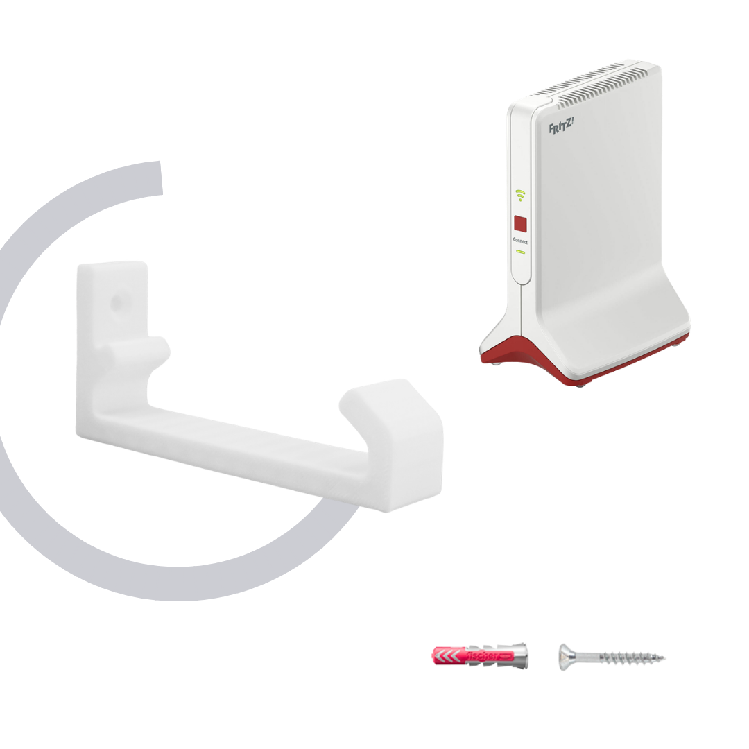 ie Wandhalterung kompatibel mit AVM Fritzbox Repeater 3000AX und 6000 bietet eine praktische und platzsparende Möglichkeit, Ihren Repeater sicher an der Wand zu befestigen. Sie sorgt für mehr Ordnung, schafft zusätzliche Ablagefläche und fügt sich dezent in verschiedene Wohn und Arbeitsbereiche ein. Die Halterung wird in Deutschland hergestellt und überzeugt durch ihre stabile und sorgfältige Verarbeitung. Im Lieferumfang enthalten sind 1x Wandhalterung, 1x Schraube und 1x Dübel. Repeater und weitere abgebildete Gegenstände sind nicht im Lieferumfang enthalten.