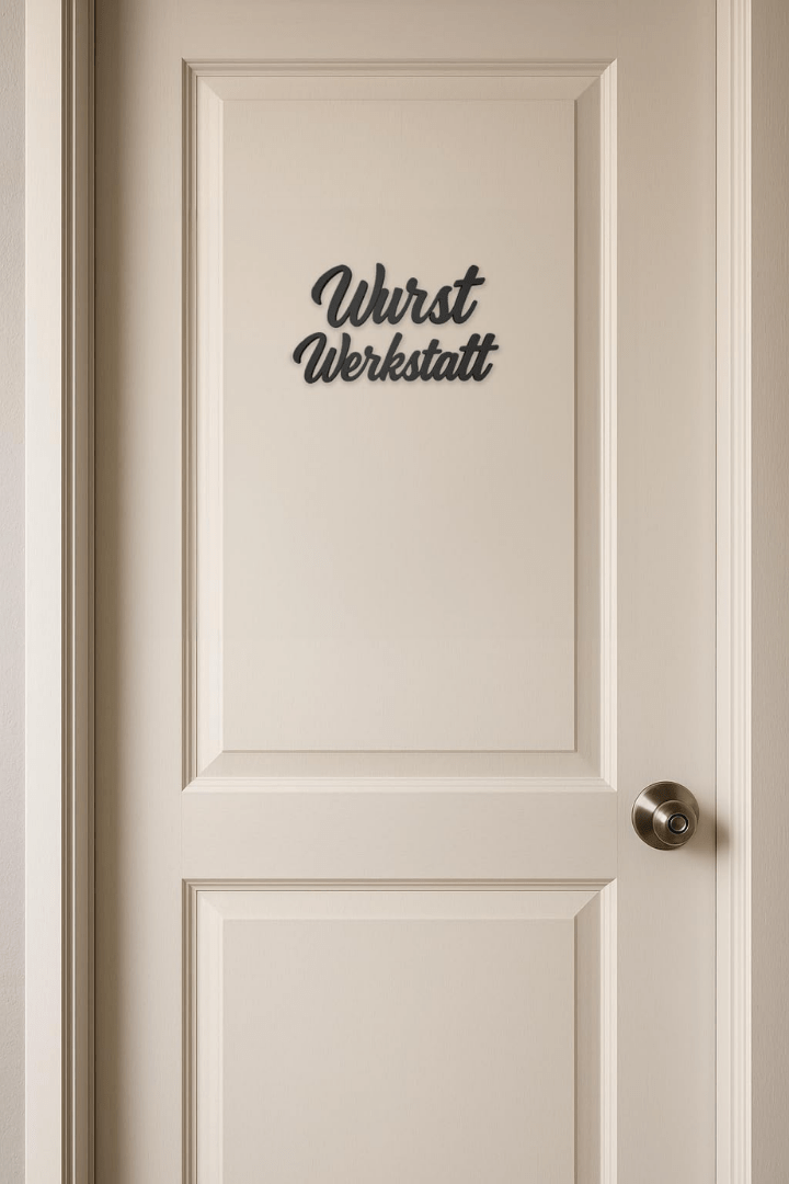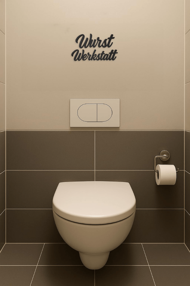 🌭 Humorvoller Wortwitz: Der deftig-charmante Schriftzug „Wurst Werkstatt“ bringt herzhaften Klo-Humor an jede Toilettentür und sorgt garantiert für breites Schmunzeln bei Familie, Freunden und Gästen.